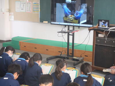 10月15日(水)5年生がオンライン社会科見学に参加しました。インターネットを通じて学校と現地をつなぐことで、教室にいながら工場の様子をリアルタイムで見ることができます。今回は自動車の生産について学びました。自動車は身近な乗り物ですが、児童にとっては初めて知ることばかりです。工場ではロボットやコンピュータが活躍していると知り、興味深そうに聞き入っていました。